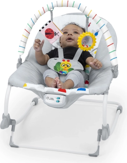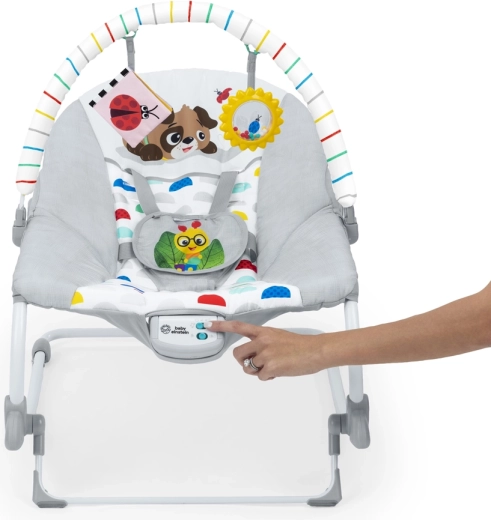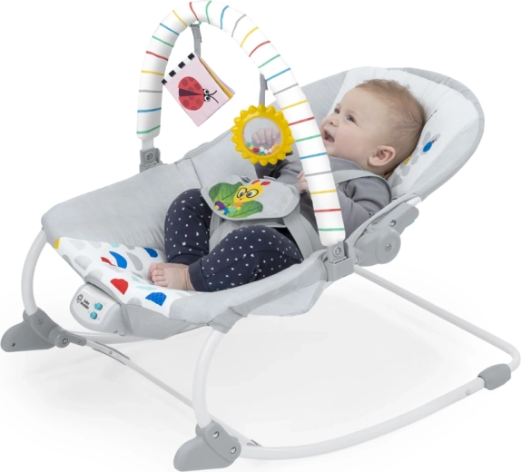 Univerzálne detské lehátko a hojdátko v jednom pre bábätká od narodenia až po batoľací vek. Ponúka jemné vibrácie, klasickú hudbu viac ako 20 minút, 2 režimy používania (stabilné sedadlo / hojdátko), 2 polohy sklonu a 5-bodový bezpečnostný pás. Odnímateľná hrazdička so zmyslovými hračkami podporuje rozvoj a zábavu, poťah možno ľahko prať v práčke.