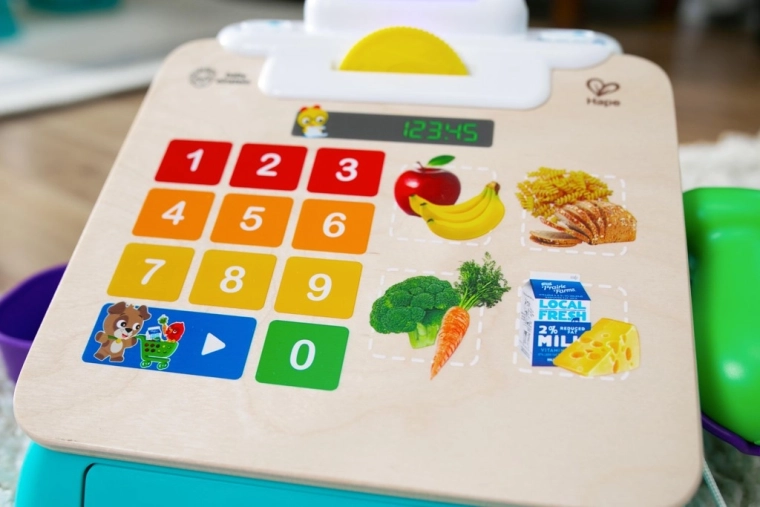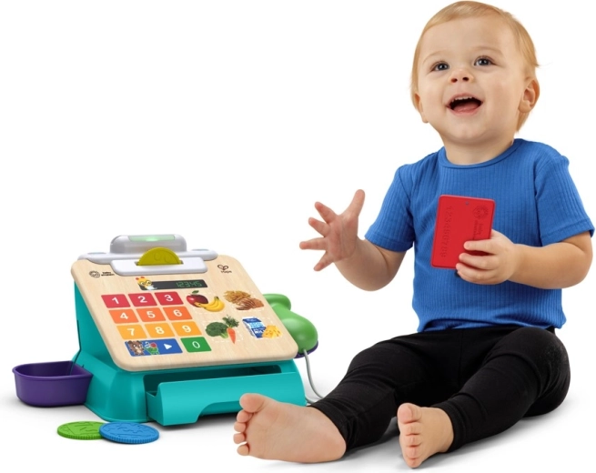 Objavte zábavnú cestu k rannému učeniu s pokladňou BABY EINSTEIN x HAPE. Vďaka 16 ultracitlivým tlačidlám Magic Touch reaguje aj na ten najjemnejší dotyk a okamžite odmeňuje dieťa svetielkami, zvukmi a hudbou. Dva herné režimy rozvíjajú zvedavosť: Play na voľné objavovanie zvukov a Discovery na učenie potravín a čísel v angličtine, španielčine, francúzštine a nemčine.