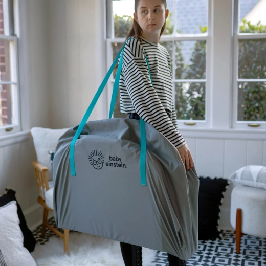 Univerzálna detská postieľka a ohrádka 3v1 od Baby Einstein rastie s bábätkom od narodenia. Ponúka bassinet na pokojný spánok, aktívnu hraciu podložku s klavírom a priestrannú ohrádku pre batoľatá. Priedušné sieťované strany, viac než 70 melódií a fráz v 4 jazykoch, cez 25 minút upokojujúcej hudby a svetiel, jednoduché čistenie a rýchle 3‑krokové zloženie s cestovnou taškou uľahčia každý deň.