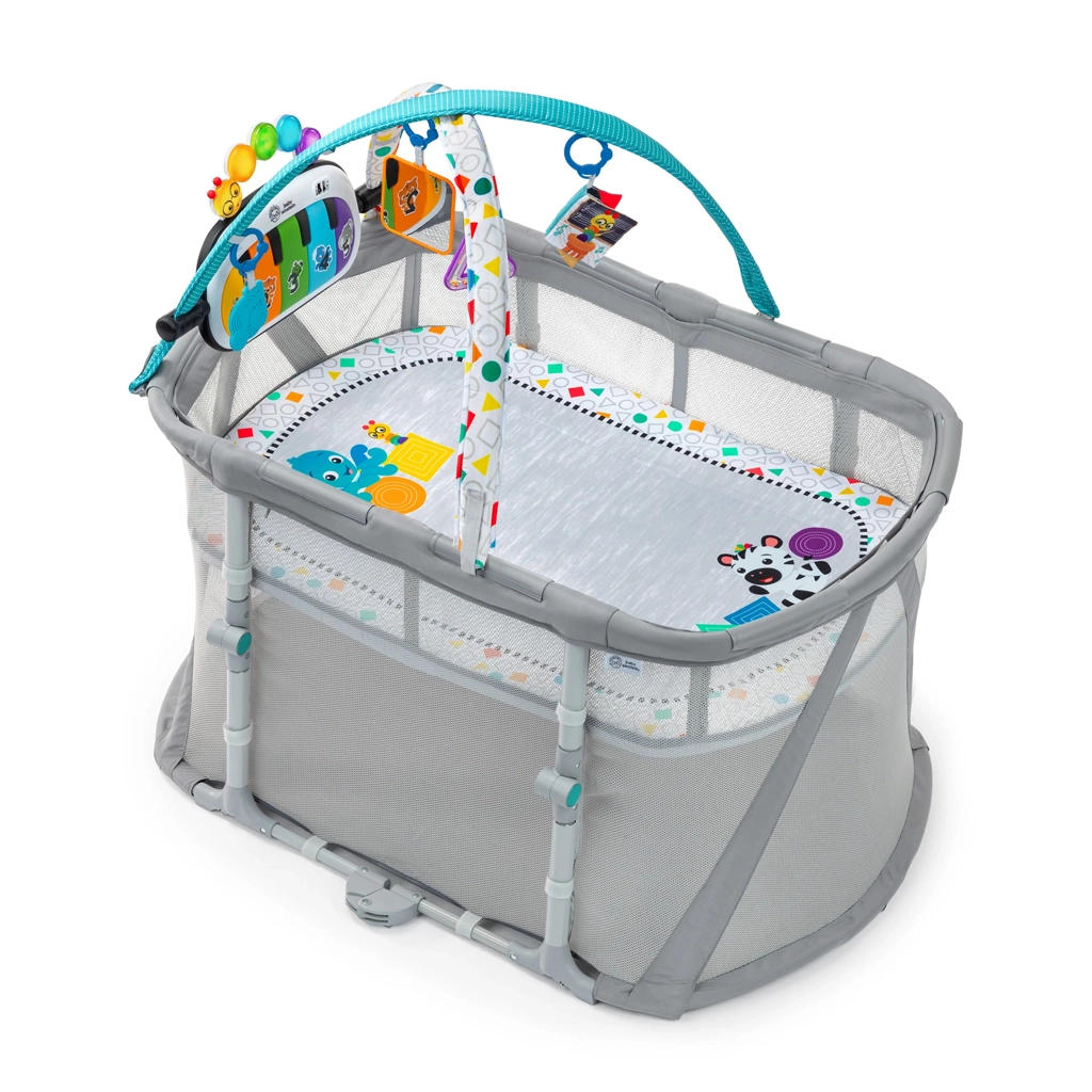 Objavte flexibilné riešenie starostlivosti a hrania s produktom Baby Einstein Kick & Snooze 3v1. V režime bassinet poskytuje bábätku útulné a bezpečné miesto na spánok s upokojujúcou hudbou a jemnými svetlami. Pri raste dieťaťa ľahko prepnete na activity gym na hru na brušku a zmyslový rozvoj alebo na playard/ohrádku na bezpečné samostatné hranie.