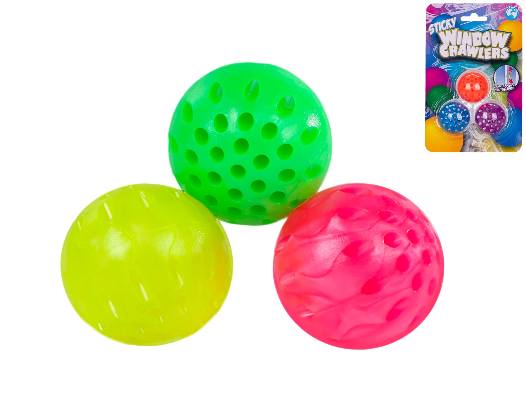 Zábavné a upokojujúce lepiace antistresové loptičky od Toys&Trends potešia deti od 3 rokov. Vďaka prilnavému silikónu po hodení na hladký povrch, ako je sklo či zrkadlo, pomaly sklzyvajú nadol, čo je vizuálne pútavé a podporuje jemnú motoriku. Sada obsahuje 3 loptičky v dvoch farebných variantoch – ideálne na zdieľanie zábavy doma aj vonku.