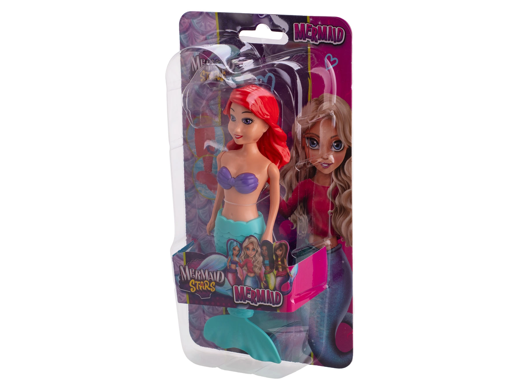 Vyberte si z troch variantov vlasov – ryšavé, čierne alebo blond – a rôznych kombinácií farieb plutiev (fialová/oranžová, fialová/modrá, oranžová/modrá). Bábika je vyrobená z odolného plastového materiálu, takže zvládne každodenné hranie aj kontakt s vodou.