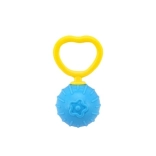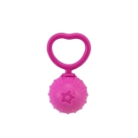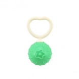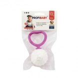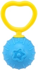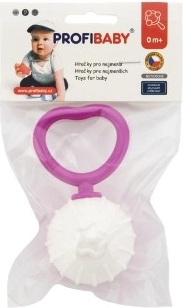 Hrkálka meria približne 18 cm a guľôčka má priemer 5 cm – ideálna veľkosť na pohodlné držanie. Dvojfarebné prevedenie v mixe farieb priťahuje pozornosť a podporuje vnímanie kontrastov. Vhodná pre deti od narodenia.