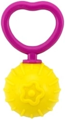 Ergonomická rukoväť umožňuje bábätku pevný a pohodlný úchop, podporuje koordináciu oko–ruka a prvé pokusy o samostatné držanie.