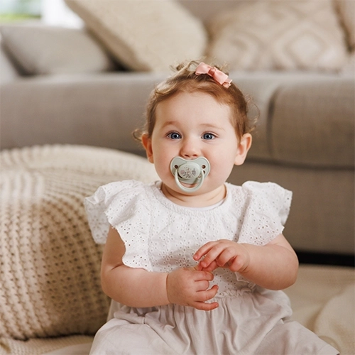Vďaka svietiacemu úchytu rýchlo nájdete cumlík aj v noci bez rozsvecovania svetla. Kvalitný 100 % silikón bez BPA je bezpečný, ľahko sa čistí a možno ho sterilizovať vyvarením. Odporúčanie logopéda potvrdzuje, že anatomický tvar napodobňuje prirodzené sanie a prispieva k správnemu postaveniu jazyka.