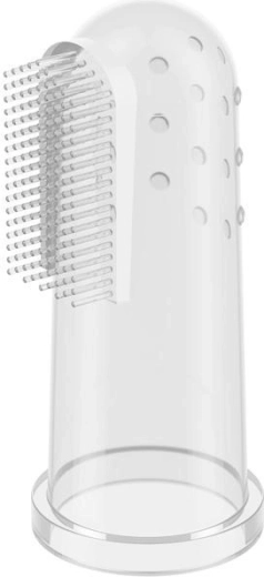 Prstová kefka BABYONO je vyrobená z mäkkého, bezpečného silikónu a je ideálna na každodennú ústnu hygienu novorodencov a dojčiat. Štetinky na jednej strane pomáhajú šetrne odstraňovať nečistoty z prvých zúbkov, zatiaľ čo jemné výstupky na druhej strane sú skvelé na masáž podráždených ďasien počas prerezávania zúbkov.