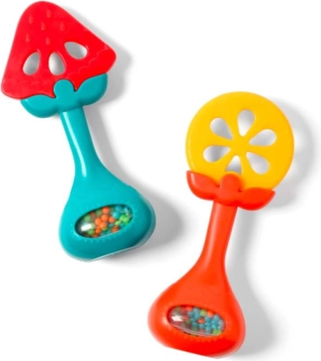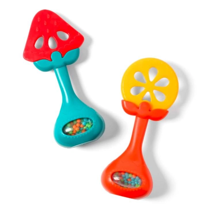 - 2 v 1 – hryzátko + hrkálka: zmyslová stimulácia vďaka zvukovým guličkám a vizuálnym prvkom.