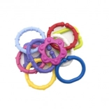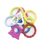 Táto sada farebných plastových tvarov je ideálna prvá hračka pre bábätká. Dieliky sa do seba ľahko zacvaknú a pevne držia, takže si deti môžu opakovane stavať retiazky a jednoduché konštrukcie. Rôzne textúry a farby poskytujú bohatú zmyslovú stimuláciu a hrkavý efekt deti zaujme aj upokojí.
