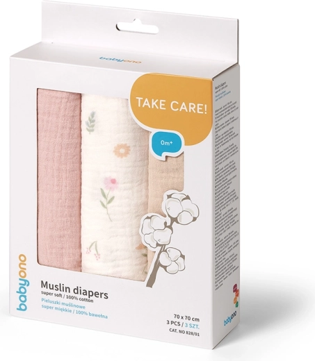 Objavte univerzálne mušelínové plienky BabyOno Super Soft v nežných ružových tónoch a s jemnou potlačou. Ľahká a vzdušná bavlnená tkanina šetrne opatruje citlivú detskú pokožku, nedráždi a nespôsobuje vyrážky. Vďaka vyššej gramáži a krčenej väzbe skvele sajú a zároveň rýchlo schnú.