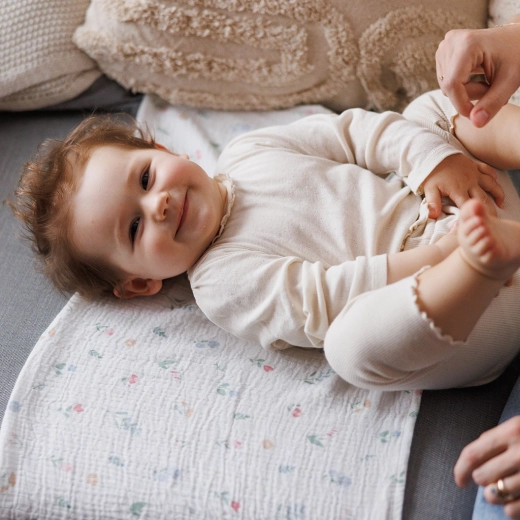 Ľahká mušelínová väzba zo 100 % bavlny zabezpečuje skvelú cirkuláciu vzduchu, pohodlie bez prehriatia a mimoriadne mäkký dotyk pre novorodenca.