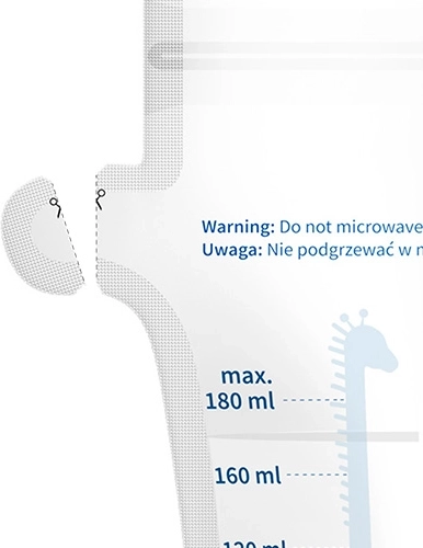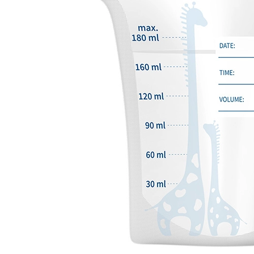 Jasné rysky do 180 ml a vyhradené pole pre dátum, čas a objem umožnia presné dávkovanie a prehľadné označenie každej porcie mlieka.