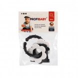 Praktické čiernobiele hryzadlá v 4 tvaroch s integrovanou hrkálkou a pohodlným úchytom podporujú rozvoj zraku a jemnej motoriky už od narodenia. Vyrobené zo zdravotne nezávadných materiálov, bezpečných na každodenné používanie.