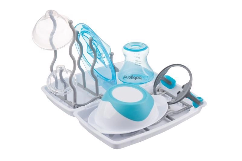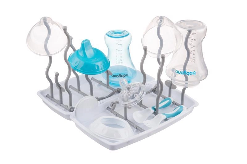 Univerzálna konštrukcia je kompatibilná so všetkými bežnými dojčenskými fľašami a príslušenstvom. Skladacie prvky ušetria miesto v skrinke aj v cestovnej taške. Stojan je vyrobený z bezpečných, odolných materiálov bez BPA a ľahko sa čistí ručne aj v umývačke.