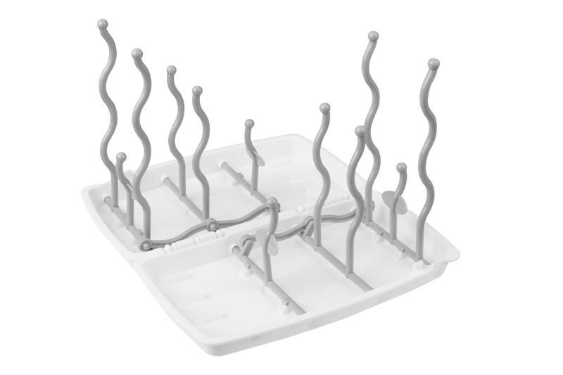 Viac kolíkov a premyslené rozvrhnutie pojme fľaše, cumlíky aj menšie príslušenstvo. Vzdušné usporiadanie podporuje rýchle odkvapkávanie a schnutie bez zvyšnej vlhkosti.
