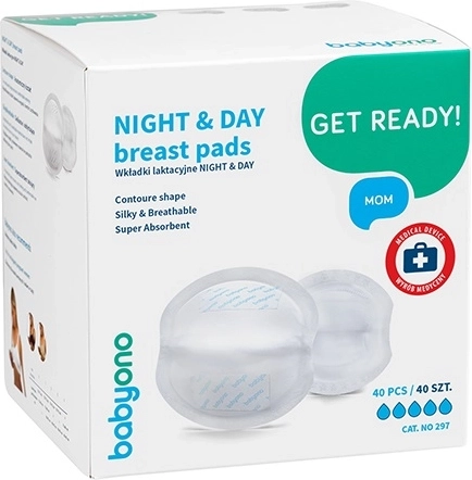 Praktické prsné vložky BabyOno Night & Day poskytujú spoľahlivú ochranu pred presakovaním vo dne aj v noci. Majú super absorpčné jadro s gélovým absorbentom, hodvábne jemný a priedušný povrch šetrný k citlivej pokožke a nepriepustnú vonkajšiu vrstvu s dvoma lepiacimi páskami pre isté uchytenie. Každá vložka je samostatne balená pre maximálnu hygienu.