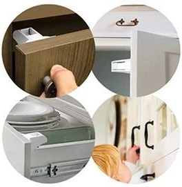 Zámky sa inštalujú dovnútra skríň a zásuviek, takže zostávajú neviditeľné pre deti aj návštevy a zároveň chránia obsah pred nechceným otvorením.