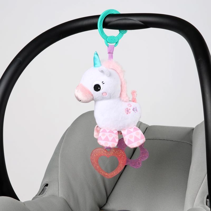 Zaistite svojmu bábätku zábavu a upokojenie kdekoľvek na cestách. Závesný jednorožec Bright Starts Sparkle & Shine kombinuje mäkučké plyšové materiály, textúry na zmyslové objavovanie a praktické hryzadlá, ktoré pomáhajú pri prerezávaní prvých zúbkov.
