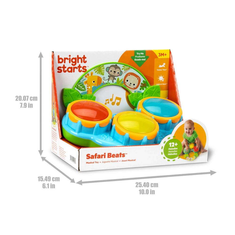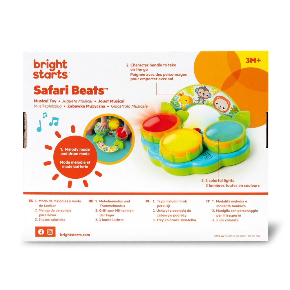 Safari Beats pomáha rozvíjať jemnú aj hrubú motoriku, koordináciu ruka–oko a zmyslové vnímanie. Hračka je pripravená na okamžité hranie – súčasťou balenia sú vymeniteľné batérie AA.
