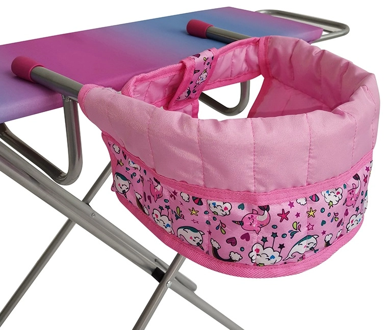Roztomilá a praktická jedálenská stolička v ružovej farbe s motívom jednorožcov poteší každú malú princeznú. Je navrhnutá na pohodlné sedenie pri jedle aj tvorení a vďaka kvalitným materiálom sa ľahko udržiava v čistote.