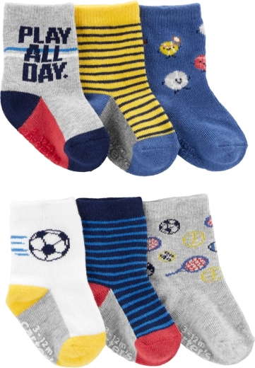 Praktická sada detských ponožiek Carter’s pre chlapcov vo veku 0–3 mesiace prináša 6 párov v moderných farbách a dizajnoch. Vyrobené zo super mäkkej bavlny pre celodenné pohodlie a príjemný pocit na pokožke. Vďaka prímesi elastanu skvele držia na nožičke a neškrtia.