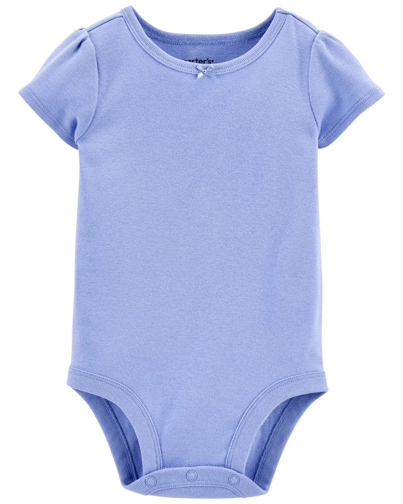 Pohodlné body v jemnej fialovej farbe so spevneným výstrihom a patentkami v rozkroku na rýchle prebaľovanie.