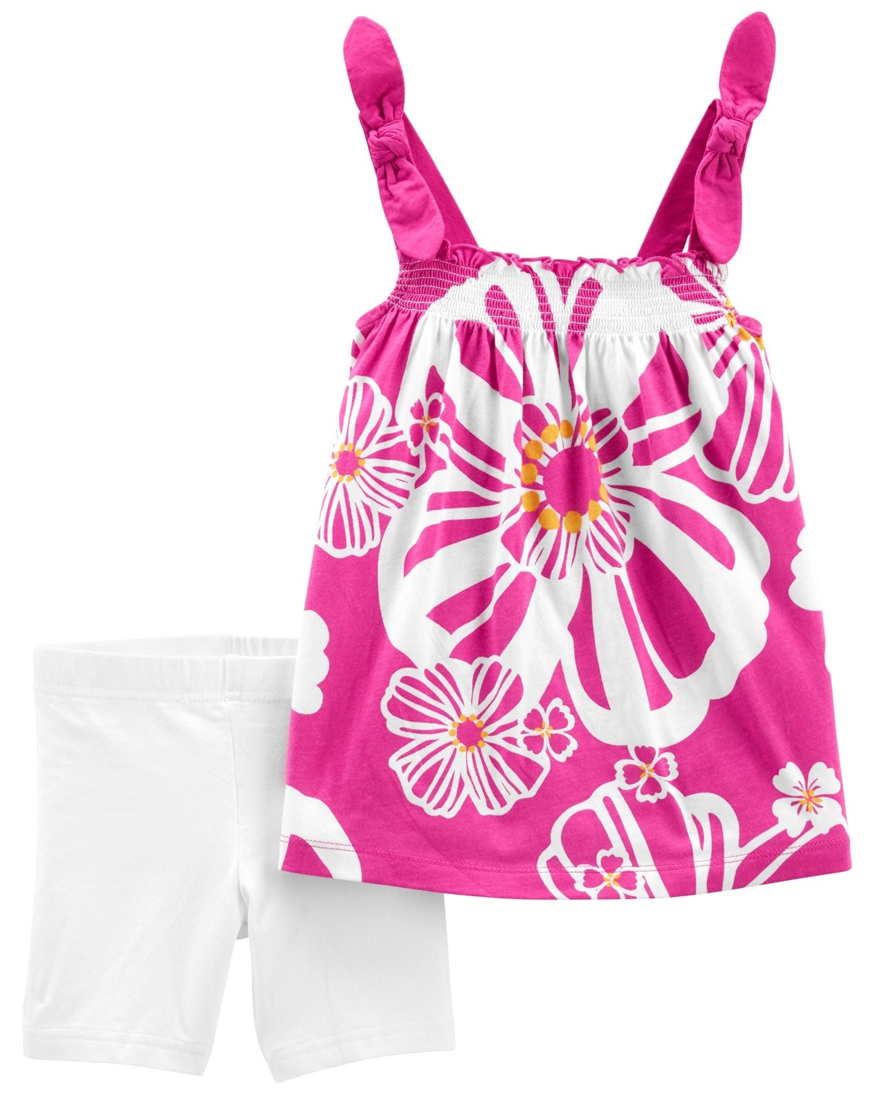 Tento 2-dielny set je skvelou voľbou na každodenné nosenie aj výlety. Tunika s ozdobnými mašličkami a jemným riasením v hornej časti krásne sedí a neobmedzuje v pohybe. Jednofarebné biele legíny s krátkou dĺžkou a elastickým pásom zabezpečujú maximálne pohodlie a ľahké obliekanie.