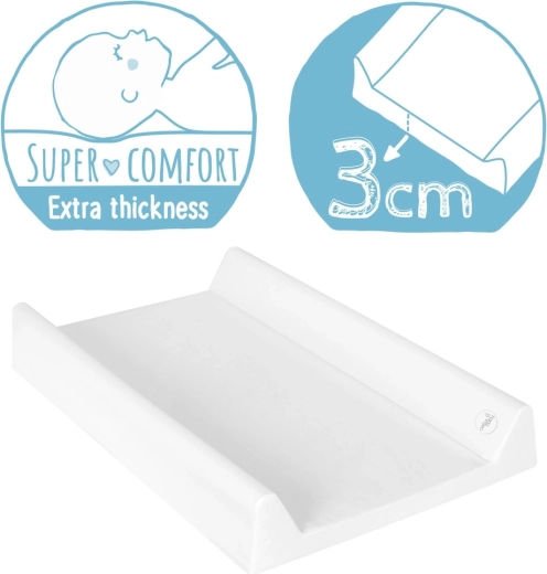 Prebaľovacia podložka Ceba Baby Comfort je navrhnutá na každodennú starostlivosť o novorodencov a dojčatá. Dve bočné hrany zvyšujú pocit bezpečia, pevná doska zaisťuje stabilitu na postieľke a mäkká výplň s hrúbkou až 3 cm poskytne bábätku skutočný komfort. Povrchová fólia je atestovaná, neobsahuje ftaláty a je šetrná k detskej pokožke.
