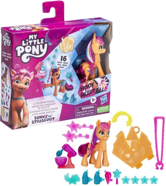 Sada My Little Pony Kúzelný Cutie Mark prináša deťom kreatívne hranie, pri ktorom môžu odhaľovať a meniť kúzelné symboly Cutie Mark. Pripnite talizmany a prívesky na štýlovú kľúčenku jednoty, ozdobte hrivu poníka a objavujte nové kombinácie. Pózovateľný 8 cm poník umožňuje vytvárať scénky a príbehy ako zo seriálu.