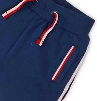 Kontrastné bočné pruhy a lemovanie vreciek dodávajú moderný a svieži vzhľad vhodný na ihrisko aj voľný čas.
