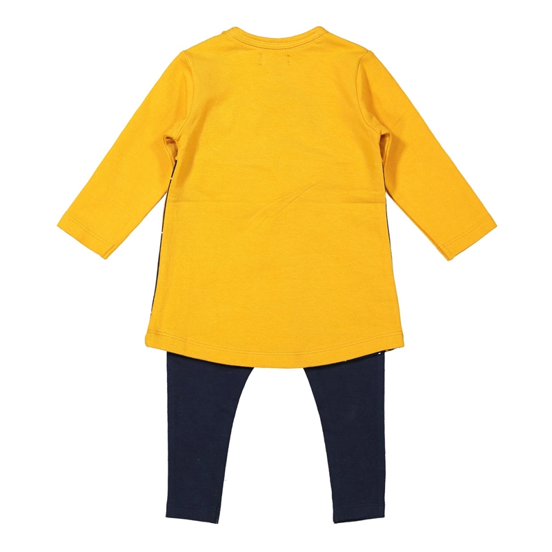 Oblečte svoju malú parádnicu do pohodlného a kvalitného kompletu, ktorý skvele drží tvar a je príjemný k detskej pokožke. Set obsahuje žlté šaty a elastické legíny, ktoré spolu perfektne ladia a uľahčia každodenné obliekanie.