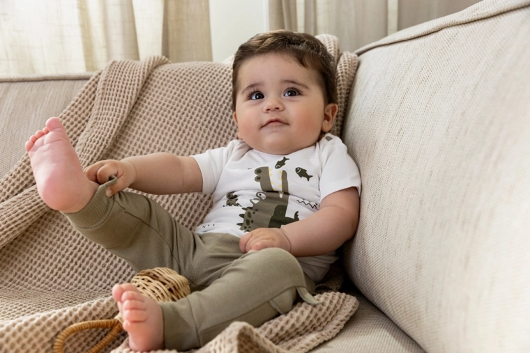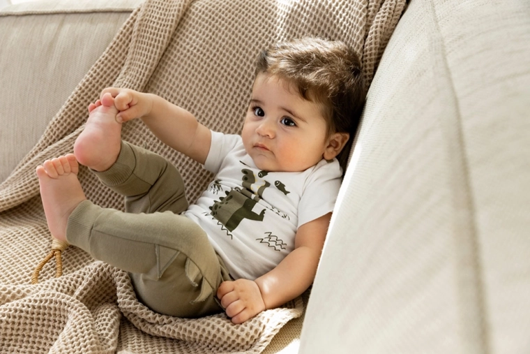 Bavlnený úplet s prímesou elastanu je hebký k detskej pokožke, krásne sa prispôsobí a neobmedzuje v pohybe pri hrách ani oddychu.
