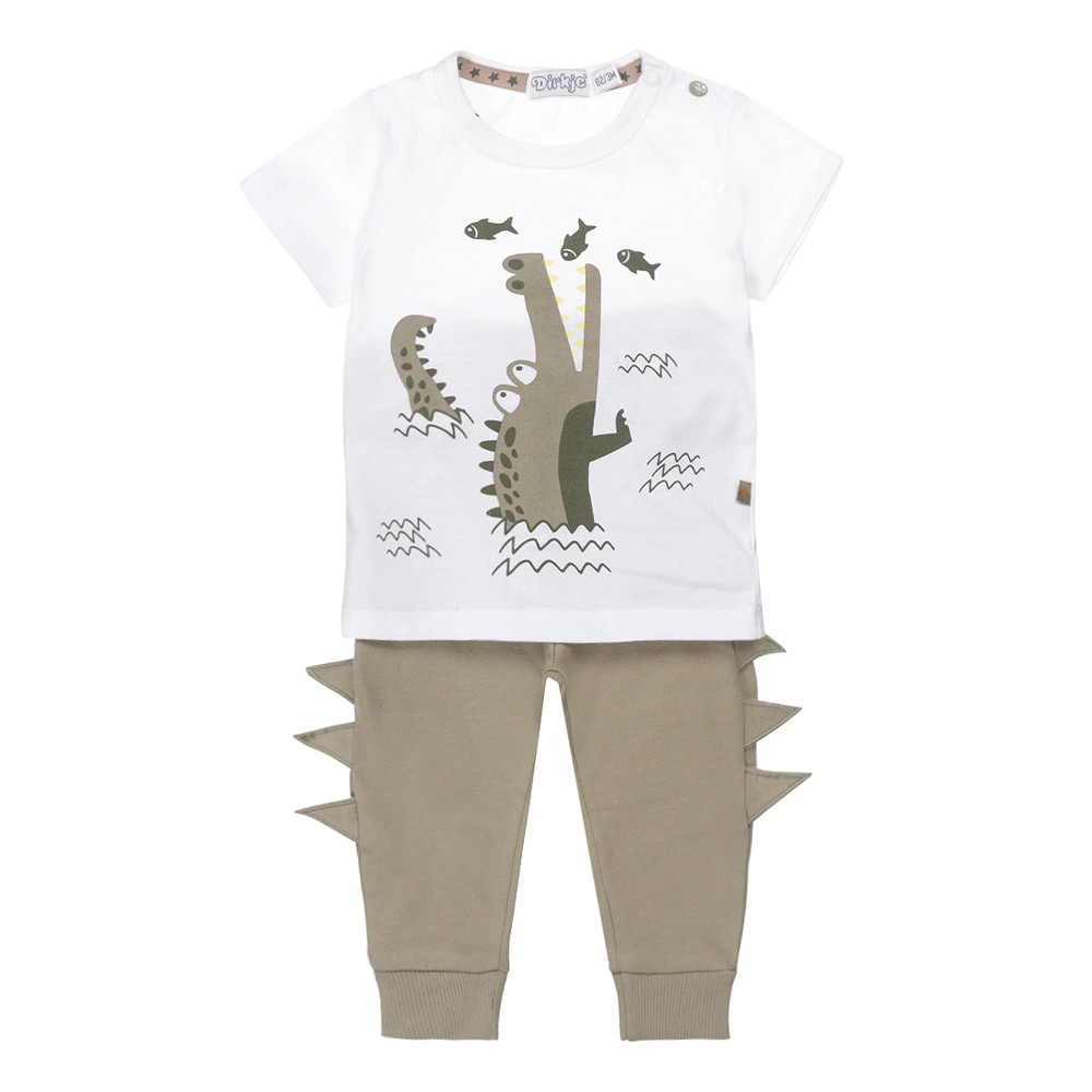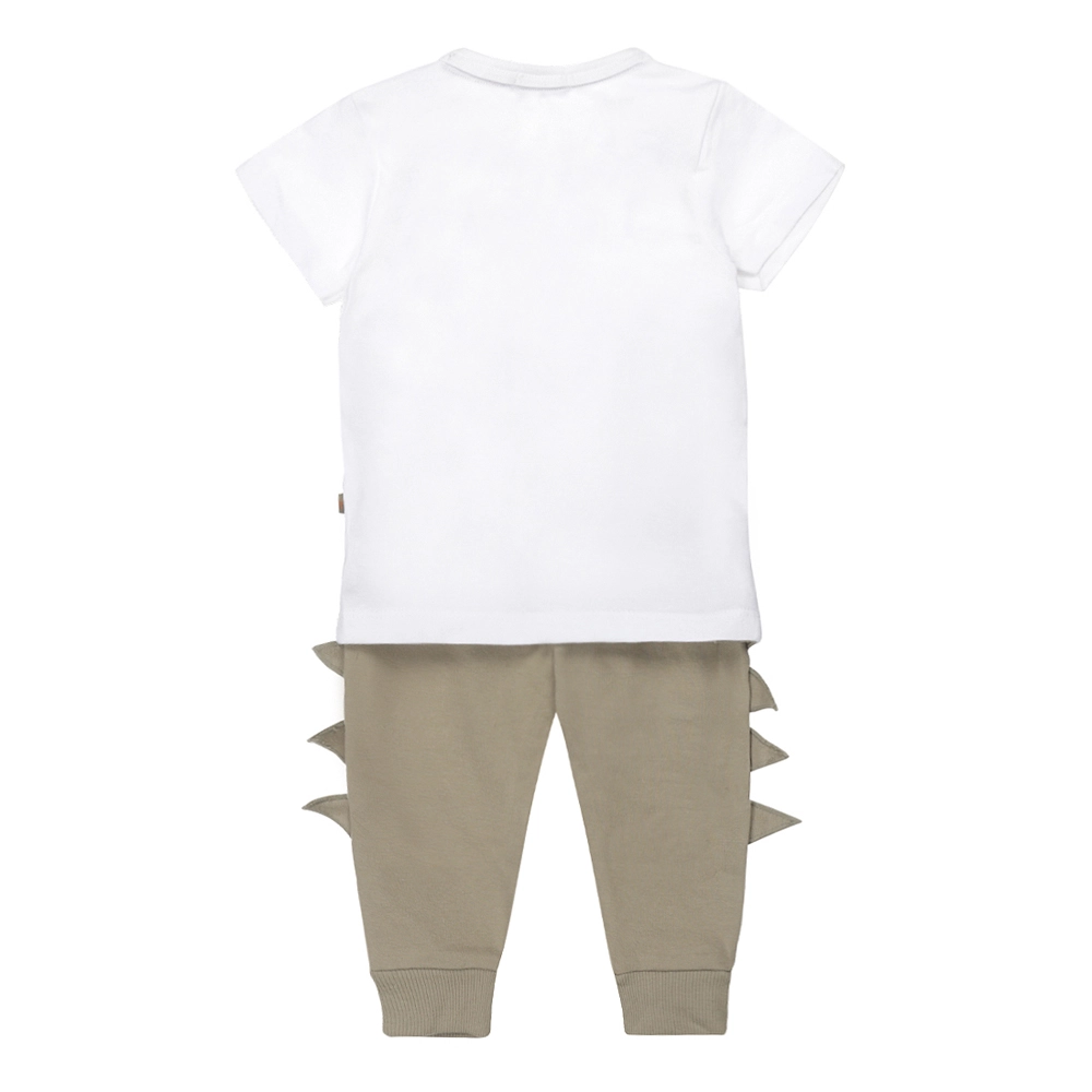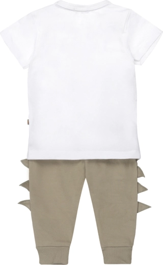 Štýlový detský komplet DIRKJE v bielej farbe kombinuje krátkorukávové tričko a pohodlné tepláky na každodenné nosenie. Vďaka podielu elastanu je set príjemne pružný, poskytuje voľnosť pohybu a skvele sedí. Ocente kvalitné šitie, dokonalý strih a trendy dizajn, ktorý netreba ladiť – outfit je pripravený na okamžité oblečenie.