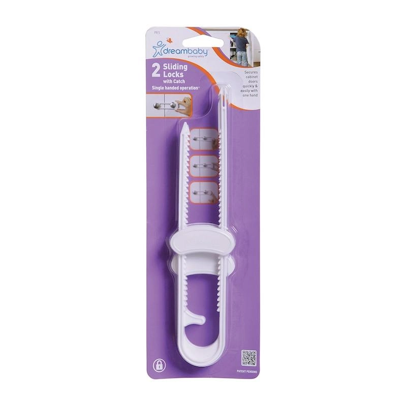 Posuvné zámky Dreambaby predstavujú jednoduché a účinné riešenie, ako zabezpečiť skrinky pred zvedavými deťmi. Vďaka posuvnému mechanizmu sa zámok pevne nasunie cez dvojicu madiel či úchytov v tvare D a zabráni nechcenému otvoreniu.