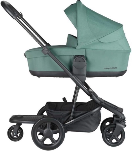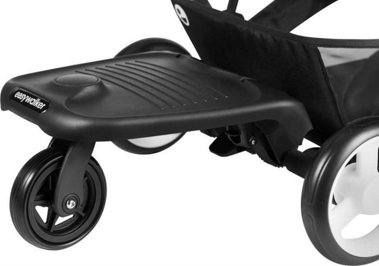 Easywalker Easyboard je chytré riešenie pre rodiny s viacerými deťmi. Staršie dieťa sa jednoducho odvezie za kočíkom na stabilnej platforme s protišmykovým povrchom, zatiaľ čo mladšie pohodlne odpočíva v kočíku. Vďaka jednému väčšiemu otočnému kolesu je jazda plynulá a s kočíkom možno dobre manévrovať aj v rušných uliciach.