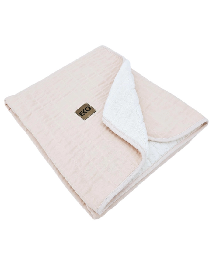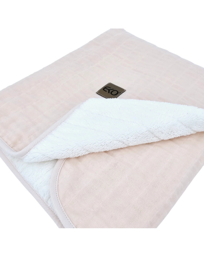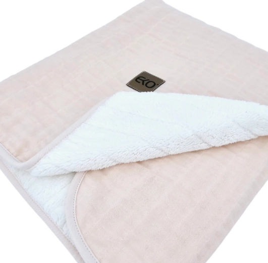 Táto mušelínová deka EKO v nežnom ružovom odtieni kombinuje prírodnú 100% bavlnu z vonkajšej strany a hrejivú kožušinkovú (fleece) podšívku zo 100% polyesteru. Ľahké, ale účinné zateplenie z hypoalergénneho vlákna zabezpečuje príjemné teplo bez zbytočnej záťaže. Deku ľahko využijete počas celého roka – doma, na cestách aj pri prechádzkach.