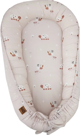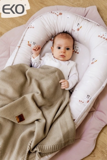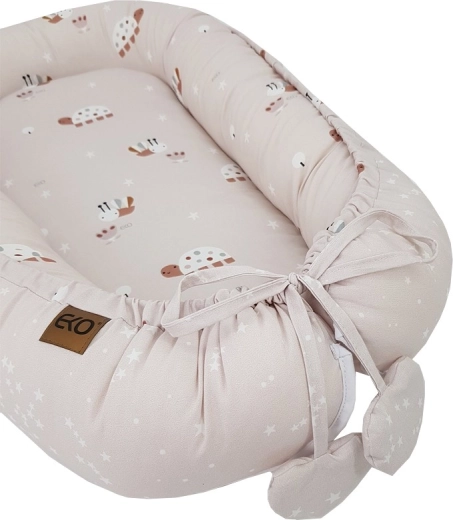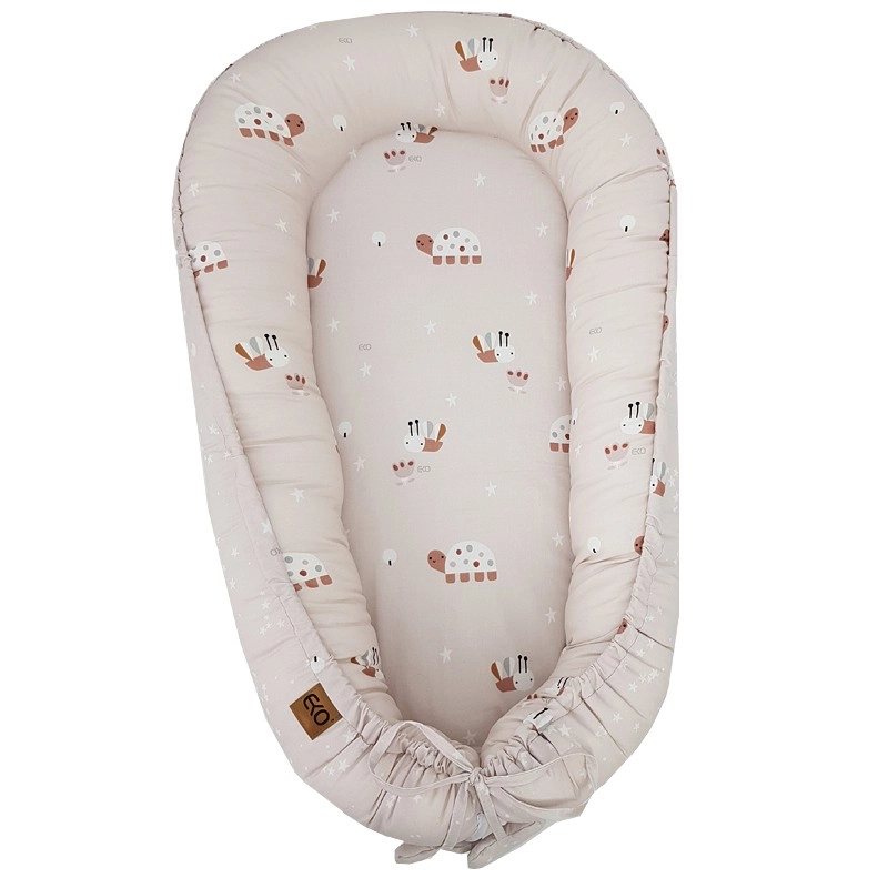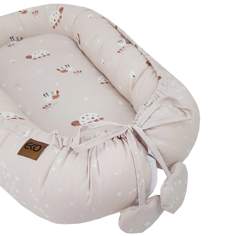 Hniezdo pre bábätko EKO je navrhnuté tak, aby ponúklo maximálne pohodlie a pokoj. Obojstranné prevedenie umožňuje rýchlo zmeniť vzhľad, zatiaľ čo mäkká 100 % bavlna na povrchu a hypoalergénna silikónová výplň sa postarajú o jemný dotyk a vzdušnosť. Vysoké bočnice pomáhajú bábätko udržať v bezpečnom priestore a uľahčujú polohovanie na bok, čo oceníte najmä pri refluxe.