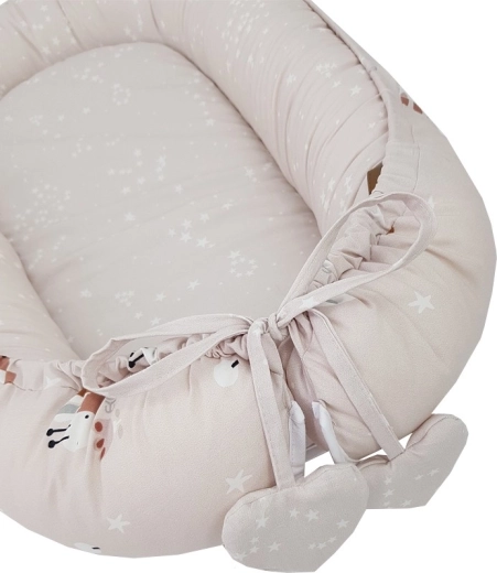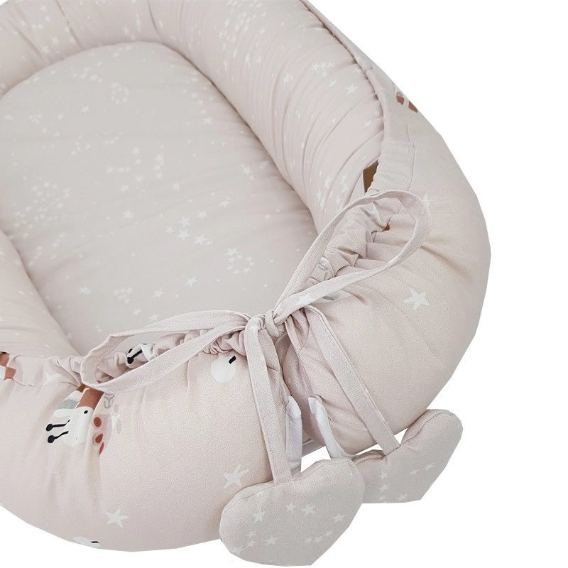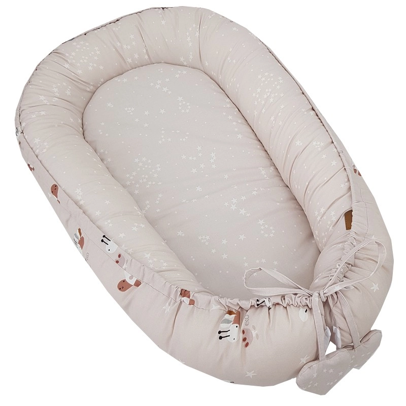 Hniezdo je ideálne do postieľky, na gauč alebo podlahu ako prenosná oddychová zóna a možno ho použiť aj ako mäkkú hraciu podložku. Jednoduchá údržba a kvalitné spracovanie zaisťujú dlhú životnosť. Upozornenie: hniezdo nie je určené na prenášanie dieťaťa.