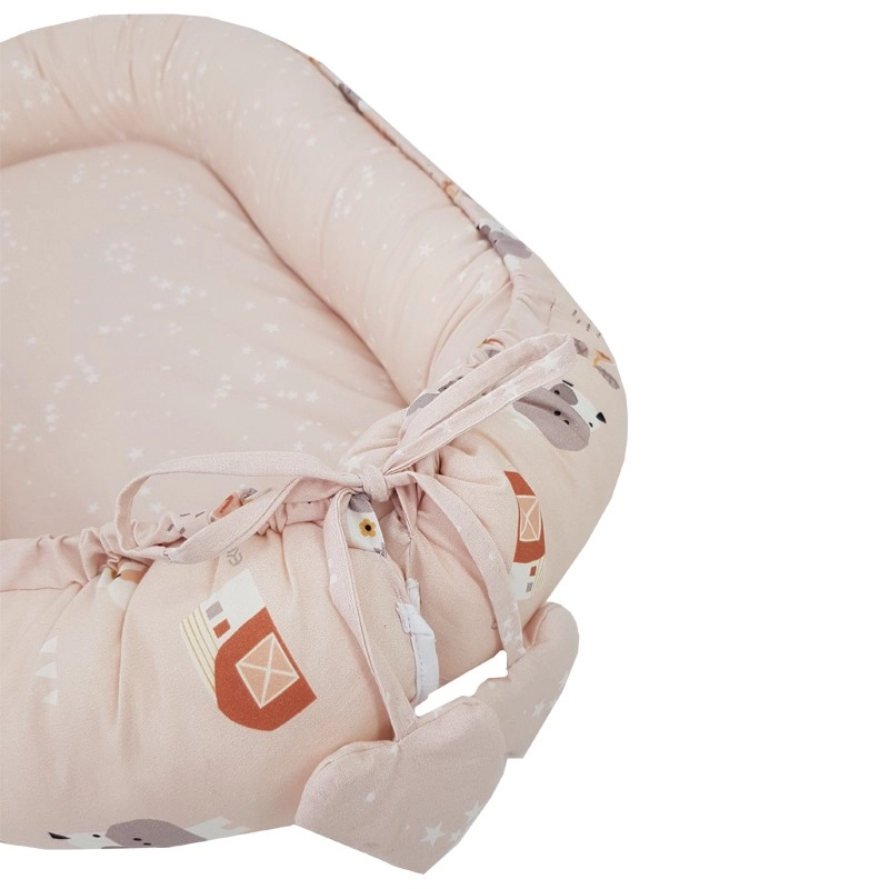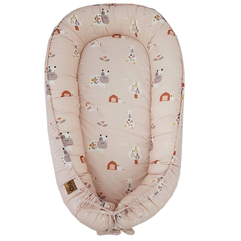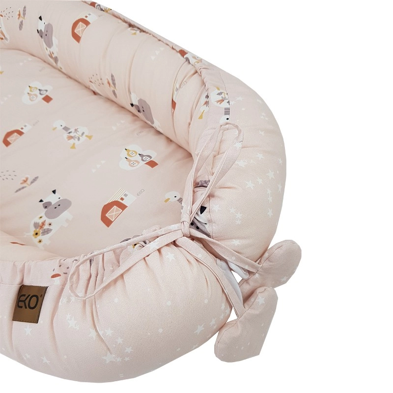 Hniezdo pre bábätko EKO My Farm Stars Powder Pink s rozmerom 90 × 60 cm je navrhnuté pre pokojný spánok a pohodlné odpočívanie pod vaším dohľadom. Vysoké okraje pomáhajú vytvoriť pocit útulného objatia a uľahčujú uloženie na bok, čo oceníte najmä pri ťažkostiach s refluxom. Mäkký bavlnený poťah a nadýchaná, hypoalergénna výplň zabezpečujú jemný kontakt s pokožkou a pohodlie v každej polohe.