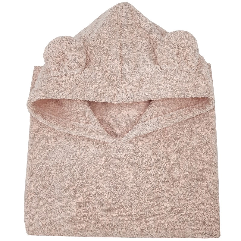 Objavte pohodlie a teplo v detskom bavlnenom ponči Eko v púdrovo ružovej farbe. Hebké froté zo 100% bavlny zabezpečuje rýchle vysušenie a príjemný pocit na koži. Kapucňa s uškami chráni hlavu pred chladom a dodáva ponču roztomilý vzhľad.