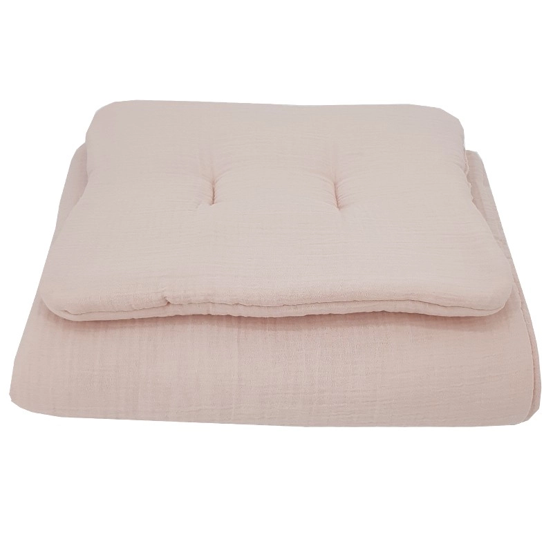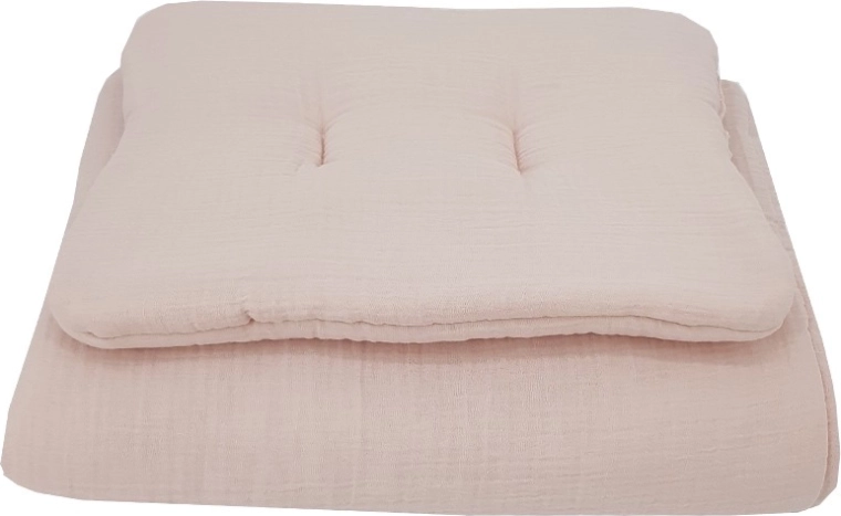Táto elegantná mušelínová sada do detskej postieľky EKO kombinuje štýl, bezpečie a komfort. Prírodný 100% bavlnený mušelín vyniká priedušnosťou a hebkosťou, ktorá sa po vypraní ešte zvýrazní. Vďaka hypoalergénnej silikónovej výplni poskytuje vankúš aj prikrývka mäkkú oporu a teplo bez zbytočného prehrievania.
