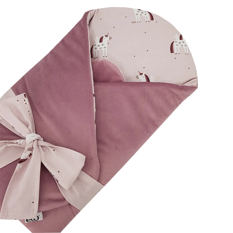 Táto prémiová zavinovačka EKO je navrhnutá pre bezpečné a pohodlné zavinutie novorodenca. Vonkajšia strana z mäkkého velvetu je hebká na dotyk, vnútorná podšívka z kvalitnej bavlny s digitálnou potlačou je priedušná a šetrná k citlivej pokožke. Integrovaná, no ľahko vyberateľná kokosová vložka pomáha rodičom s istejším držaním bábätka a dodáva zavinovačke tvar.
