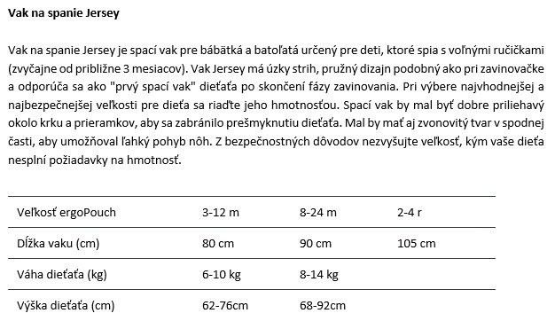Ergonomicky tvarovaný spací vak ErgoPouch Jersey s jemným listovým vzorom Willow je navrhnutý ako prvý „veľký“ spacák po ukončení fázy zavinovania. Úzky, no pružný strih poskytne pocit istoty, zatiaľ čo rozšírená spodná časť nechá nôžkam prirodzený pohyb. Priedušná zmes organickej bavlny s certifikáciou GOTS a bambusovej viskózy pomáha regulovať teplotu a bráni prehriatiu.