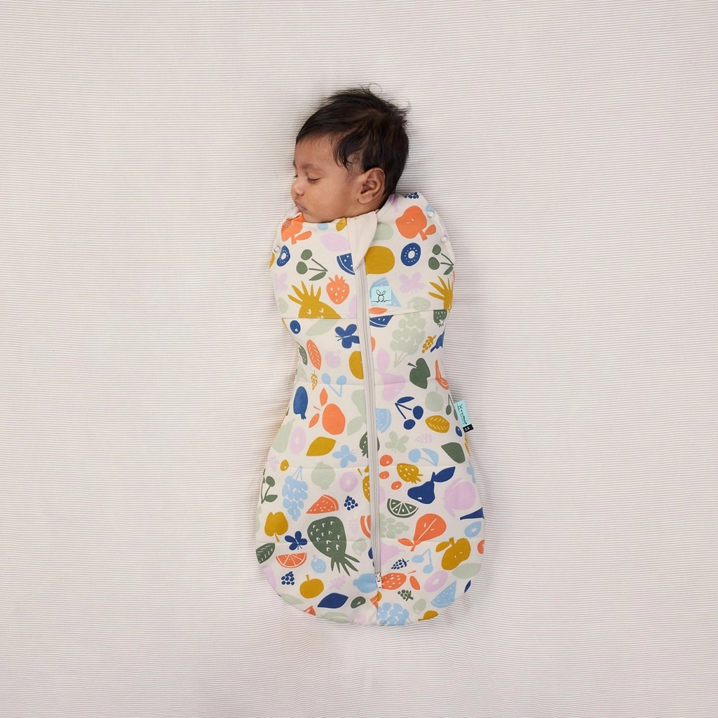 Urobte spánok bábätka pokojnejším so zavinovačkou a spacím vakom 2v1 ergoPouch Cocoon v dizajne Fruit Salad. Vďaka hodnoteniu 2,5 TOG udrží dieťatko v teple pri 17–23 °C bez potreby prikrývky. Organická bavlna GOTS s prímesou bambusu je jemná aj k citlivej pokožke, zatiaľ čo elastická tkanina umožní prirodzený pohyb. Praktické ramenné cvoky rýchlo premenia zavinovačku na spací vak a obojcestný zips uľahčí nočné prebaľovanie.