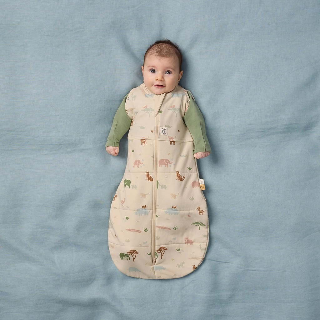 Ergonomická zavinovačka a spací vak 2v1 ergoPouch Cocoon pomáha bábätku pokojne spať bez voľných prikrývok. Tepelná trieda 2,5 TOG je ideálna pre izbové teploty cca 17–23 °C. Hrudná časť má cca 1,0 TOG na prevenciu prehriatia a voľné dýchanie. Mäkučká, GOTS organická bavlna s bambusovou podšívkou je šetrná aj k citlivej a ekzematickej pokožke.