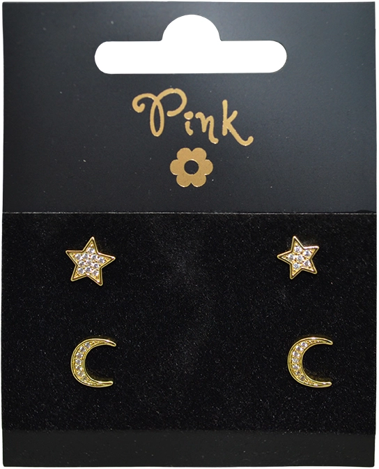 Set štyroch pozlátených náušníc spája čaro nočnej oblohy s modernou jednoduchosťou. Jeden pár zdobí elegantný kosáčik mesiaca, druhý jemná päťcípa hviezda. Brúsené kryštály dodávajú náušniciam trblietanie, ktoré vynikne pri každom pohybe, zatiaľ čo teplý odtieň pozlátenia podčiarkuje luxusný vzhľad.