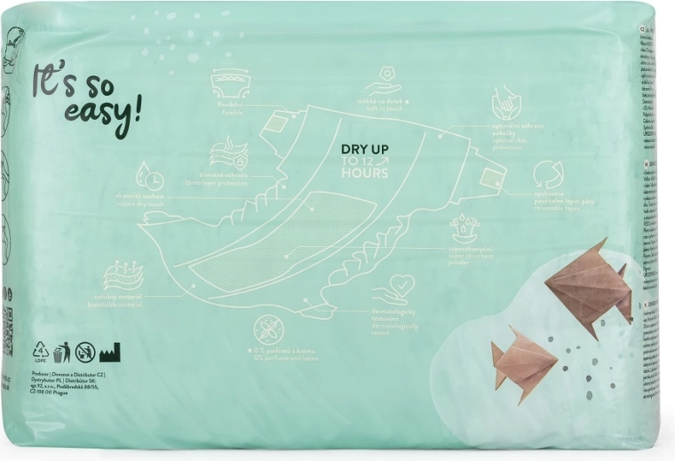 Sú ideálne na aktívny deň aj pokojnú noc: poskytujú dlhotrvajúcu ochranu až 12 hodín a minimalizujú riziko podráždenia. Dermatologicky overené zloženie je šetrné aj k veľmi citlivej pokožke bábätiek.