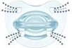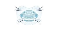 Extrémne mäkká, zúžená stopka umožňuje pohodlné zatváranie úst a rovnomerný tlak na podnebie. Minimalistický štít sa dotýka detskej tváre len v niekoľkých bodoch, čo znižuje riziko podráždenia aj pri veľmi citlivej pokožke. Hygienický silikón bez BPA je príjemný na dotyk a ľahko sa udržiava.