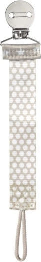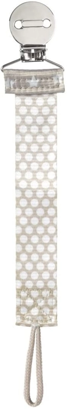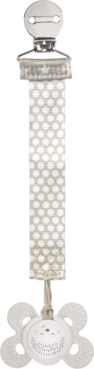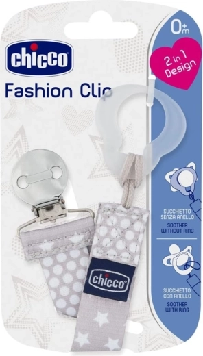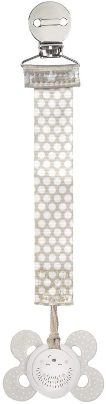 Klip na cumlík Chicco Fashion neutral je praktický doplnok, ktorý zabraňuje strate a padaniu dudlíka na zem. Mäkký textilný pásik v neutrálnom dizajne je príjemný na dotyk a vďaka obojsmernému potlaču vyzerá skvele z každej strany. Inovatívna konštrukcia umožňuje rýchle a spoľahlivé pripnutie k väčšine dudlíkov.