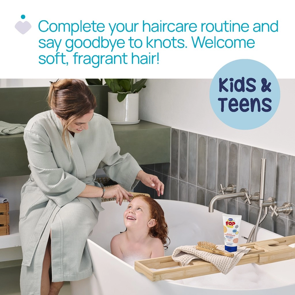 Kondicionér na vlasy Chicco Pop Vanilla je navrhnutý pre deti a tínedžerov, aby bolo umývanie a úprava vlasov bezstarostná a zábavná. Ľahká textúra s vanilkovým extraktom dodáva vlasom jemnosť a príjemnú vôňu, zatiaľ čo ošetrujúce zložky vlasy uhladzujú a minimalizujú cuchanie.