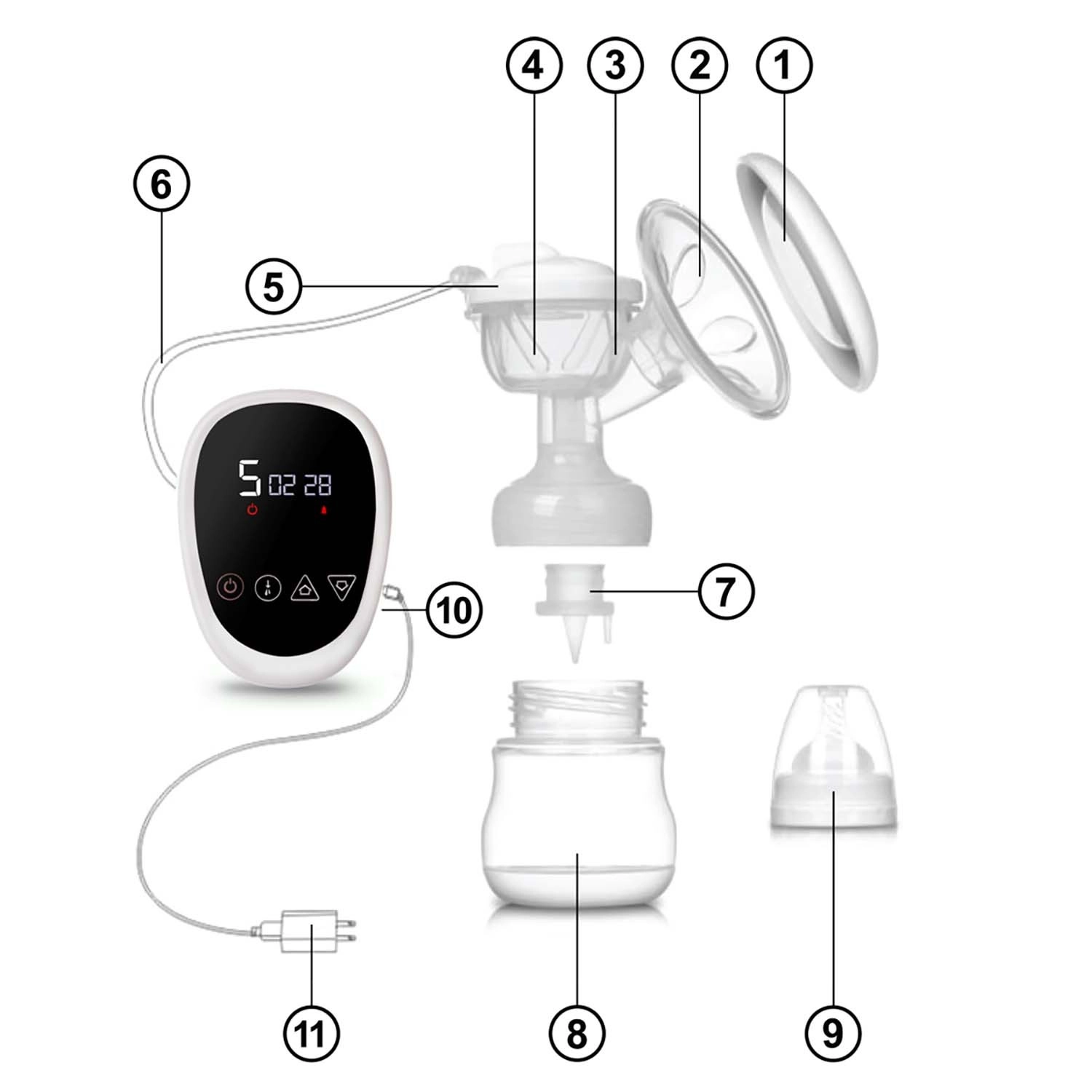 Ovládanie je intuitívne vďaka prehľadnému LCD displeju, na ktorom ľahko zvolíte režim, upravíte intenzitu alebo skontrolujete stav batérie. Tichý chod, napájanie zo siete aj cez USB a ľahká, rozoberateľná konštrukcia zaručujú hygienu, mobilitu a jednoduché čistenie. Všetky časti, ktoré prichádzajú do kontaktu s mliekom, sú bez BPA.